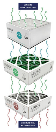 High Efficiency Particulate Air (HEPA) filters are the world standard for clean air. AirBox’s HEPA filters are greater than 99.99% effective in removing particulates the size of 0.3 microns and even more effective in capturing smaller particles. Our unique HEPA filters use controlled media spacing to enable the unit’s high air flow capacity.